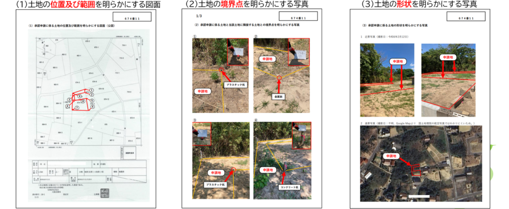 また、個別具体的な問題がある申請土地の場合の上申書や、申請土地までの経路がわかりにくい場合の経路図など、追加で提出したい書面がある場合は、任意で添付します。